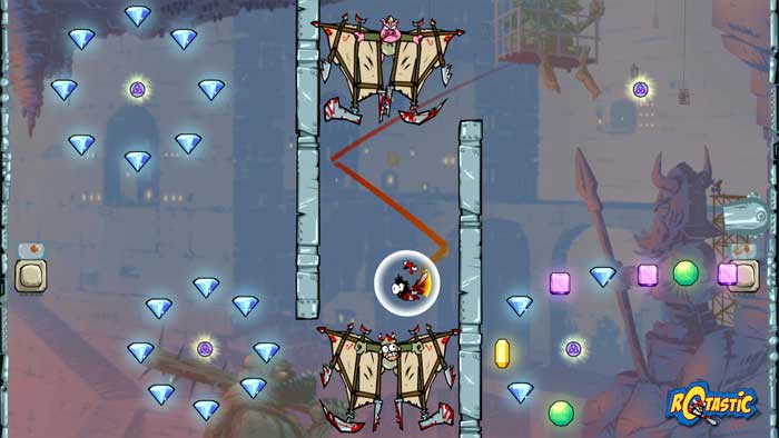 Rotastic est un jeu qui ne se prend pas au sérieux. Derrière une mécanique de jeu simple, se cache un gameplay profond et varié, qui mettra vos réflexes, votre ingéniosité et vos compétences à l’épreuve ! Récoltez les joyaux, déjouez les pièges, coupez les cordes de vos adversaires, cassez des briques, réalisez des acrobaties, éclatez des poussins et explosez les chronos, le plaisir de jeu est varié et se renouvelle constamment ! Les 70 niveaux et 7 mondes de l’immense campagne solo vous tiendront en haleine des heures durant, alors que vous tenterez de battre les meilleurs scores de vos amis et de grimper dans le classement en ligne !