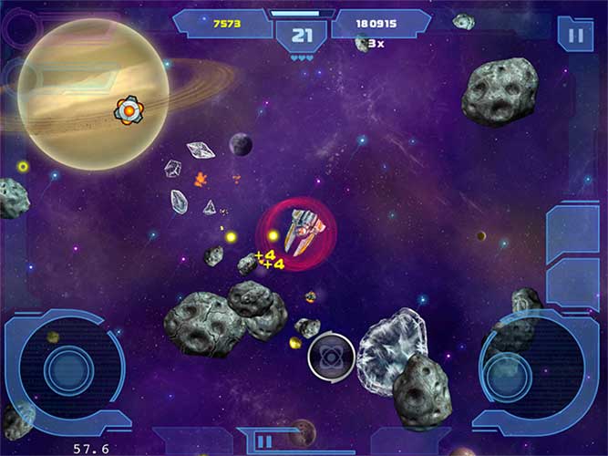 - Three galaxies to explore and conquer, with 150 waves of asteroids and alien warships to obliterate